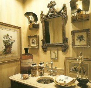 An antique french commode is transformed into a vanity for the classic french look
